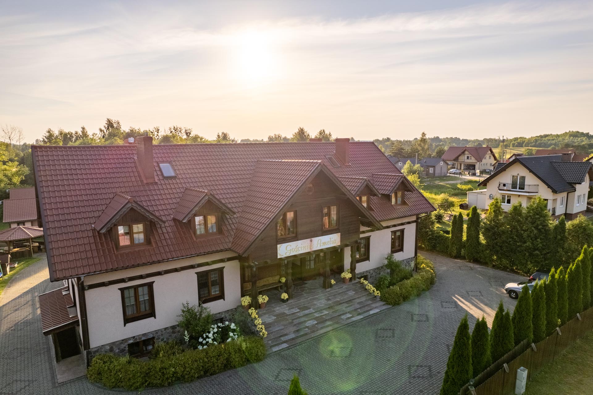 W Gościńcu Amelia dbamy o to, by nasi goście czuli się jak u siebie – wśród domowych smaków, uśmiechniętej obsługi i dbałości o każdy szczegół. To miejsce, gdzie wieczorne rozmowy przy grillu i poranna kawa na tarasie stają się wspomnieniami na lata.